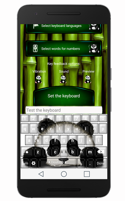 Decore seus atalhos de teclado com fotos panda em apenas alguns passos simples! mensagens de texto vai se tornar divertido, assim que você começar a usar esta aplicação! Entre no mundo mais incrível de animais bonitos e personalizar seus dispositivos móveis! Estes panda fundos vai olhar surpreendente em qualquer dispositivo e você terá uma vista maravilhosa cada vez que você está digitando uma mensagem!