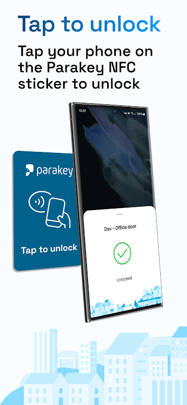 ● Toque com seu telefone em um adesivo Parakey NFC para desbloquear