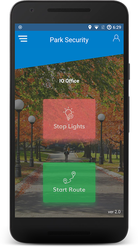Park/city security officials responding to the alert can then select the "Route" button to obtain a map with the GPS coordinates of the location of the person seeking help, They can also get verbal directions to navigate to the designated location. Upon arrival, the security official can select the "STOP" button to return the lights to their last programmed configuration. The visitor’s request for "HELP" and its deactivation are logged for reporting purposes.