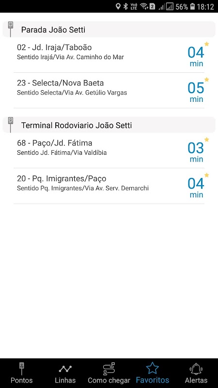 - Favorite o ponto e as linhas de ônibus de sua preferência para a previsão de horários.