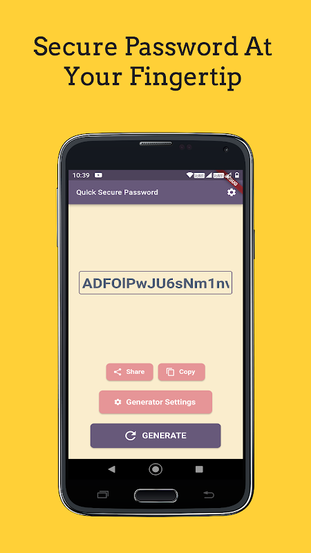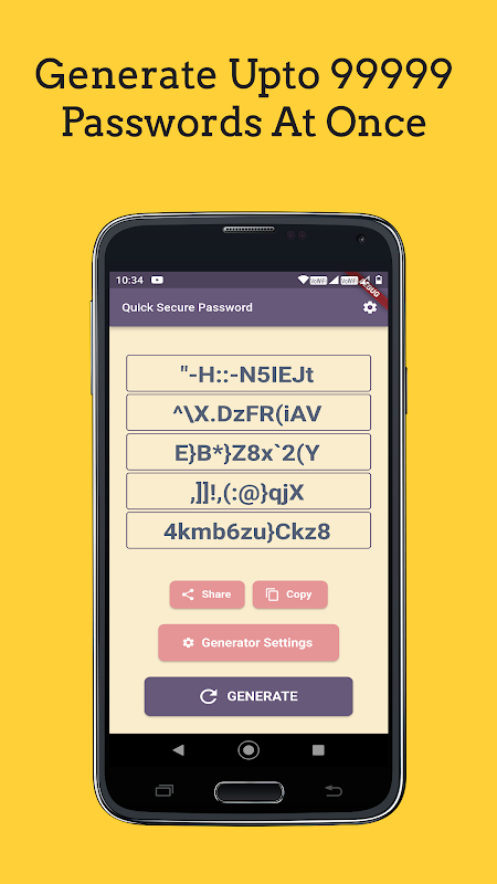 Criar senhas fortes manualmente pode ser demorado e sujeito a erros. Nosso aplicativo Password Generator automatiza esse processo, economizando seu tempo valioso e garantindo que as senhas sejam geradas de forma consistente. Ele elimina a necessidade de criar novas senhas por conta própria, tornando todo o processo rápido e sem complicações.