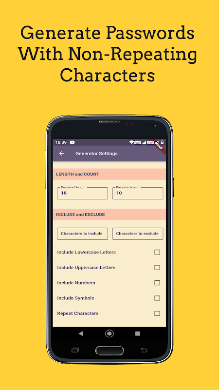 Para atender aos requisitos de diferentes plataformas ou preferências pessoais, o aplicativo permite incluir ou excluir caracteres específicos em suas senhas. Você pode optar por incluir letras maiúsculas, letras minúsculas, números e caracteres especiais ou excluir qualquer um deles com base em suas necessidades de geração de senhas.