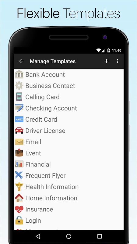 • Use modelos para itens comuns, como contas bancárias, cartões de crédito e logins.
