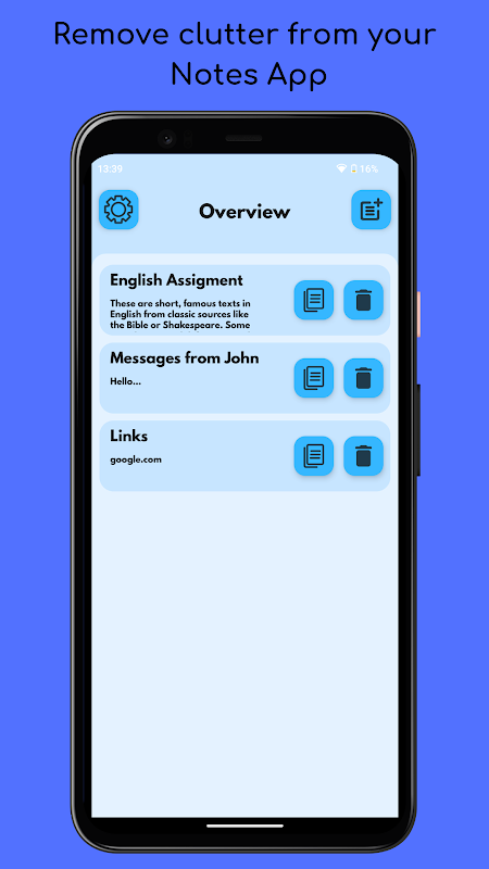 Organize seu aplicativo de anotações com nosso compartimento de colagem simples.