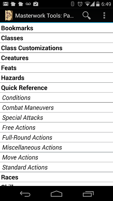 The application has tens of thousands of rule snippets allowing you to access feats, spells, monsters, npcs, classes and more. The application allows you to hone in the passages that matter for what’s going on in game now. Every title in every article is a link that lets you just see/bookmark that section. It has a powerful and fast search lets you find the rule you need, quickly.