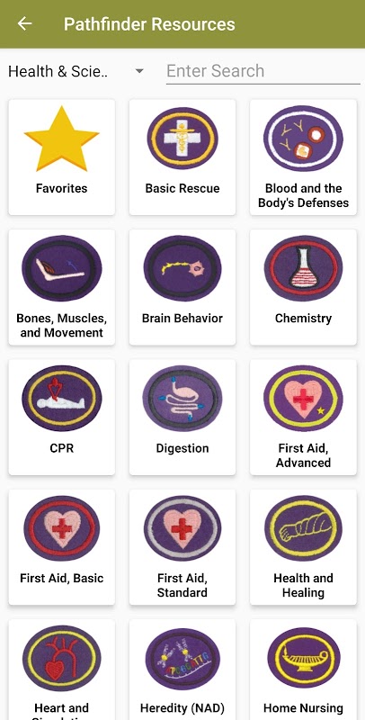 Ele também apresenta uma seção com os requisitos de nível de classe Investiture Achievement e guias devocionais. O aplicativo também tem guias de desbravadores para download e informações gerais sobre o desbravador, como a promessa do desbravador, lei, música e história.