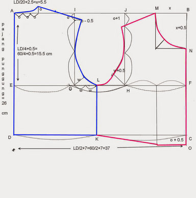 - O padrão do corpo superior, desde os ombros até a cintura, geralmente é chamado de padrão de corpo da frente e da parte traseira.