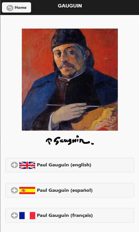 Este aplicativo contém suas obras mais icônicas, como "De onde viemos?", "O que somos?", "Para onde vamos?", "Mulheres do Taiti", "O Cristo Amarelo", "A visão após o sermão", "Nunca mais", "Autorretratos" e muito mais...