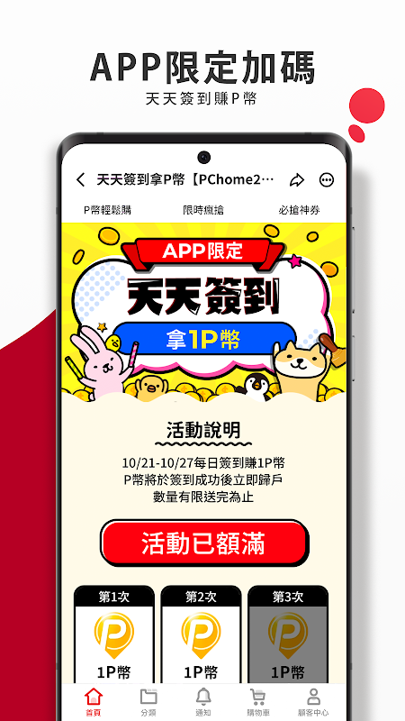 O aplicativo PChome24h Shopping foi especialmente projetado para dispositivos móveis, permitindo que você compre facilmente a qualquer hora e em qualquer lugar.