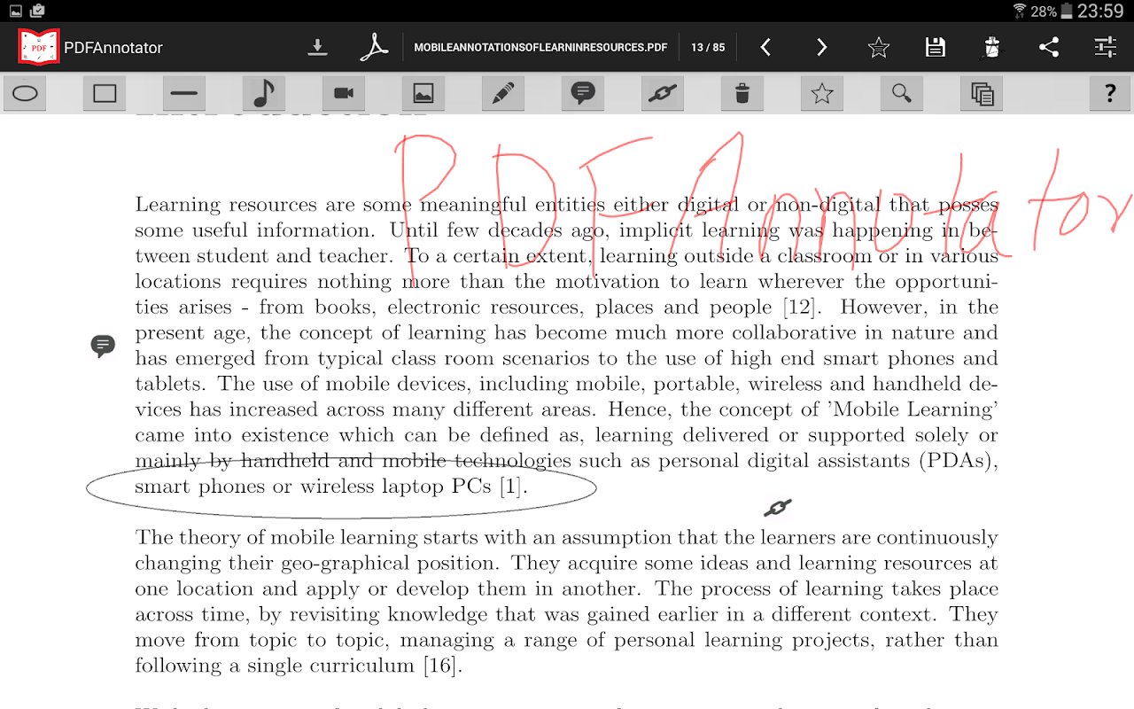 Usando PDFAnnotator, agora você pode anotar os seus PDFs com áudio, vídeo ou uma imagem incluindo outros recursos de anotação básicos descritos a seguir. Além disso, você pode criar várias versões dos PDFs já anotados. Finalmente, os PDFs anotados podem ser compartilhados entre qualquer um. Assim tomando seus PDFs para um nível totalmente novo com as anotações nunca antes visto.