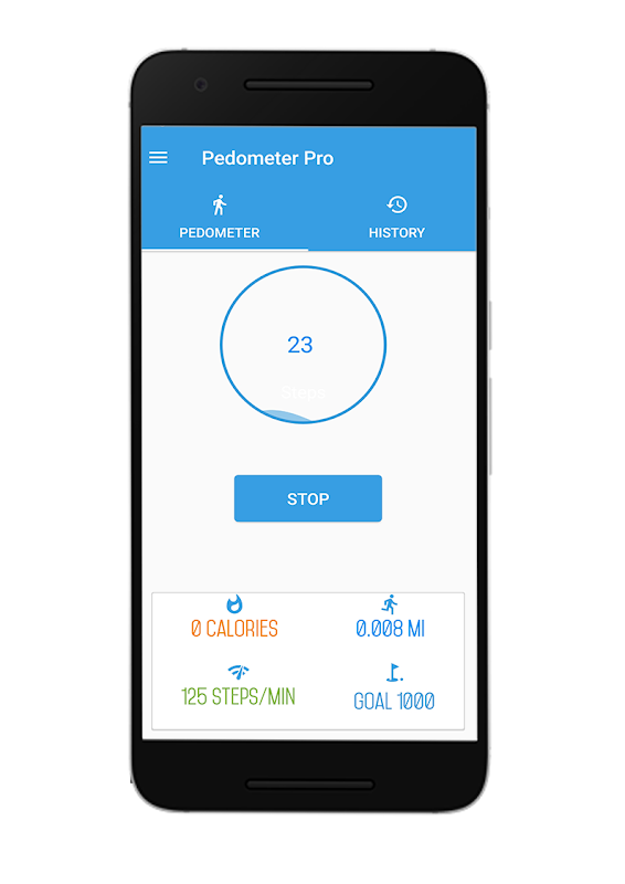 Pedometer Pro is a fitness application that helps track your steps and calorie burnt everyday with accuracy. You can set your goal and track everyday progress to improve your health. Pedometer Pro is very easy to use. All you have to do is start the tracking process by clicking on start button and hold your device while walking or put in a pocket and enjoy exercising. Pedometer Pro will automatically record your steps and calories burnt with distance travelled. You can track every day record through history or go through analytics provided in menu.