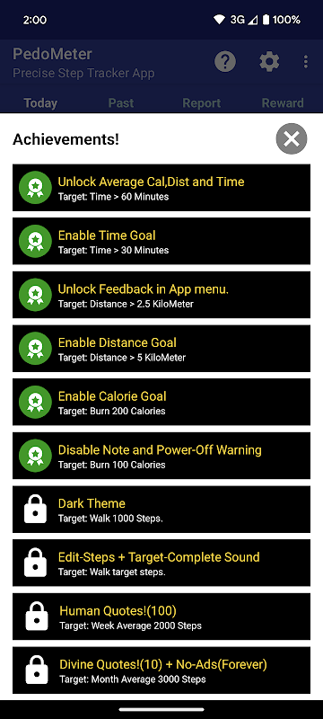 Definição de metas e motivação 🎯: Defina metas diárias, semanais ou mensais com o aplicativo rastreador de passos com pedômetro para se manter motivado e atingir suas metas de saúde.