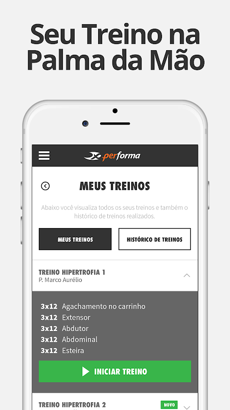 - Acesso ao treino do seu dia, sua lista de treinos e histórico dos seus treinos;