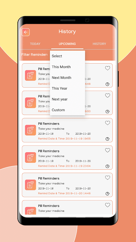 • Exibir histórico para lembrete (Hoje, Próximos, Concluído).