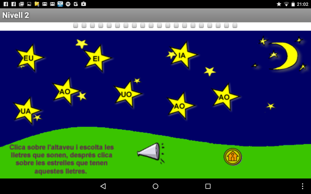 NIVEL 2 en este nivel ya utilizamos el sonido de dos vocales juntas. El procedimiento es igual que en el nivel anterior.