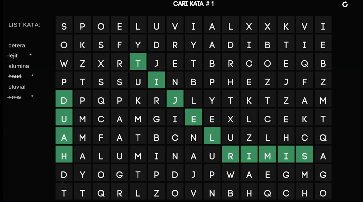 Cari Kata merupakan sebuah permainan untuk mengasah otak dan konsentrasi anda. Mencari kata dalam daftar kata di sebuah lembar kotak-kotak huruf-huruf yang acak.