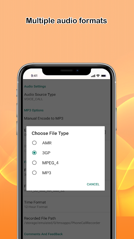 Às vezes a voz gravada não é clara nas fontes de áudio padrão, este aplicativo possui opções de gravação de MP3 com aumento e diminuição de volume. Basta ativar a gravação em MP3 nas configurações do aplicativo.