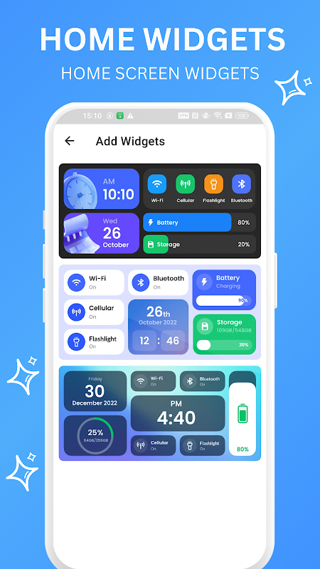 - Verifique o status do seu telefone em um só lugar, data e hora atuais, conexão de rede, status do Bluetooth, nível da bateria, armazenamento, etc.
