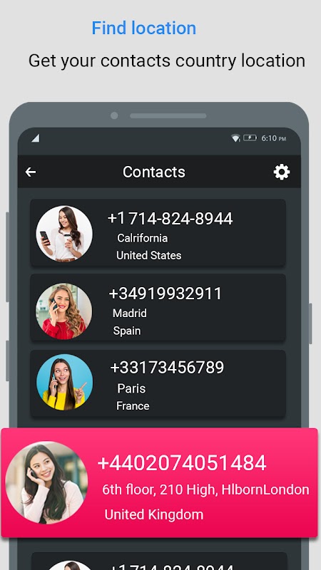 Localizador de chamadas numéricas: Rastreador de números de telefone - A localização do país do número de telefone de pesquisa pode obter a localização do número de qualquer chamador. Você encontrará qualquer localização de país de número de celular, pois este aplicativo é um rastreador de número de celular para telefone Android. Localizador de números e aplicativo rastreador de número de telefone é um aplicativo exclusivo onde você pode encontrar sua própria localização de número de celular ou localização de telefone por meio de mapas. Este aplicativo rastreará a localização atual do seu telefone. O aplicativo localizador de número de celular localiza sua localização móvel usando o código do país do telefone para determinar a localização do seu telefone no país. Outro recurso do nosso aplicativo é o rastreador de números de telefone, no qual você pode rastrear a localização de qualquer número de telefone usando nosso aplicativo. O principal objetivo deste aplicativo é rastrear a localização de números desconhecidos usando códigos de país, como se alguém estivesse ligando para você de outro país e você deseja rastrear o chamador ou o país de localização da chamada, nosso localizador de número de aplicativo e rastreador de número de telefone é o melhor aplicativo de rastreamento para você rastrear esse chamador desconhecido, colocando detalhes do número em nosso aplicativo, colocando o código do país e, em seguida, clique em localizar número no resultado nosso O aplicativo mostrará o país de onde você recebe uma chamada desconhecida. Portanto, é um aplicativo inteligente de rastreamento de país de localização. é apenas um localizador de número de telefone que informa apenas o país de localização do número, não a localização exata nesse país. Simples, não estamos rastreando nenhum outro local de número, apenas informamos o país do número. Outro recurso de nossos códigos STD de identificação de aplicativo de quase todas as cidades do mundo, onde você pode encontrar o número do código de discagem de todas as cidades famosas. Seu rastreador de localização móvel com aplicativo de número de celular, o que significa inserir o número do celular para localizar o país desse celular. É um aplicativo localizador de números para encontrar números de telefone de emergência de quase todas as cidades ou países