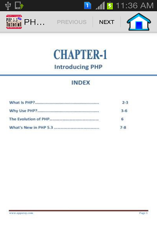 PHP 5.3 Tutorial App provides training with 20 chapters.