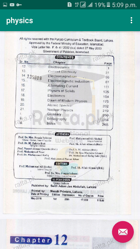 O livro de física para a classe XII (conjunto de dois livros) foi publicado pelo Conselho Nacional de Pesquisa e Treinamento em Educação em 2006. Este livro está disponível em brochura.