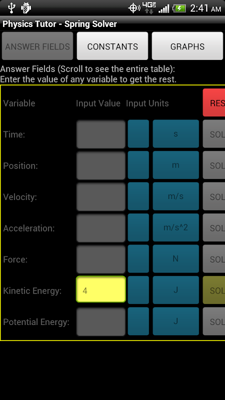 This app provides different options to the user, including choosing what values of physical constants they want to use, and what pieces of information are given in the problem.