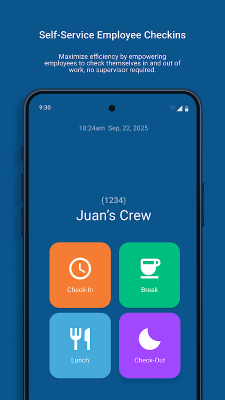 - Maximize a eficiência permitindo que os funcionários registrem a entrada e a saída do trabalho sozinhos, sem a necessidade de supervisão.