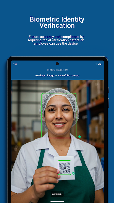 - Garanta precisão e conformidade exigindo verificação facial antes que um funcionário possa usar o dispositivo.