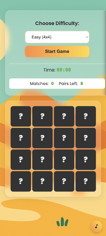Em Pinco, seu objetivo é simples: vire as cartas, memorize suas posições e encontre pares idênticos antes que o tempo ou as jogadas acabem. O jogo começa fácil e se torna mais desafiador à medida que você aumenta a dificuldade, sendo ótimo tanto para iniciantes quanto para jogadores experientes.