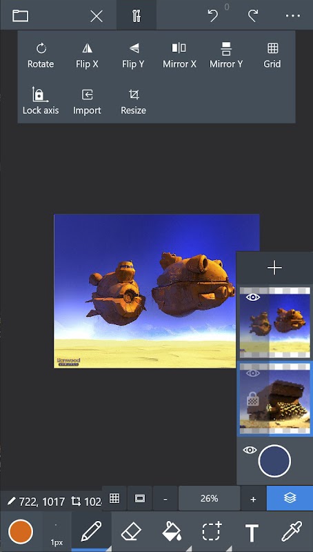 Pix2D é um editor de sprite animado, arte de jogo e arte de pixel.