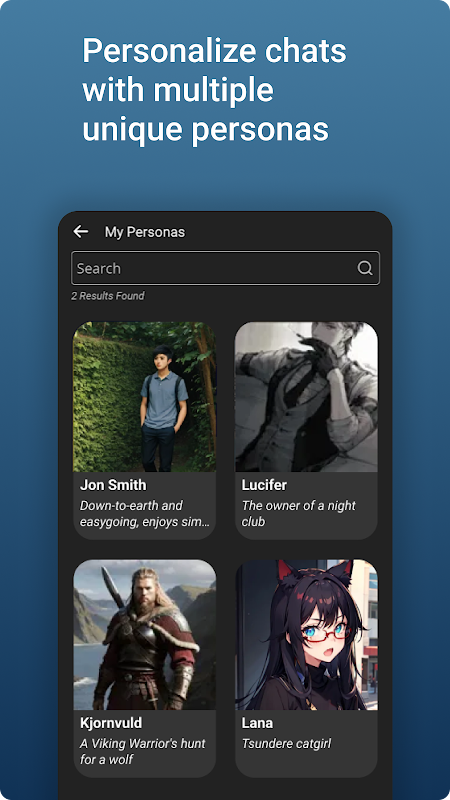 O recurso Conversas dinâmicas de IA adapta os bots às suas interações. Quanto mais você conversa, mais seus bots aprendem e respondem naturalmente, fazendo com que cada troca pareça espontânea e personalizada. Isso garante uma conversa mais profunda e envolvente, seja você fazendo RPG ou praticando um idioma.