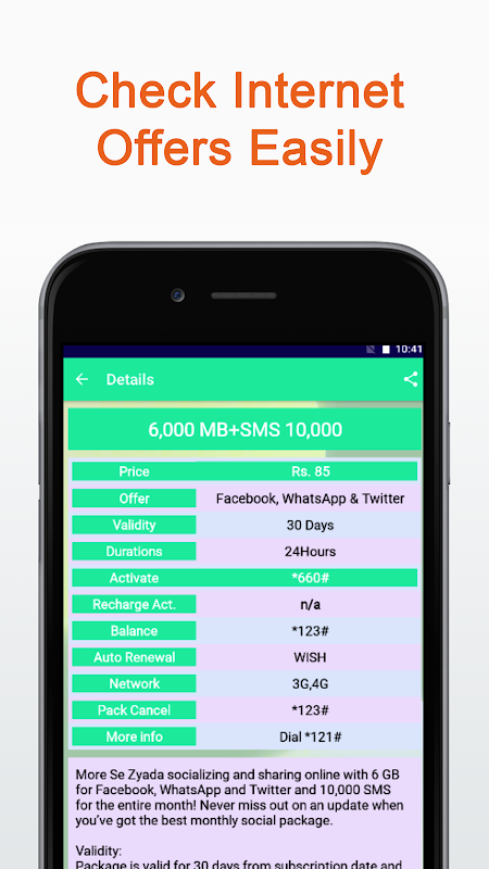 Com um design simples e limpo, este aplicativo traz informações atualizadas sobre os pacotes de celular mais populares disponíveis no Paquistão. Todas as informações essenciais — incluindo códigos de ativação, detalhes da oferta, preços, validade e códigos de serviço — estão a apenas alguns toques de distância.