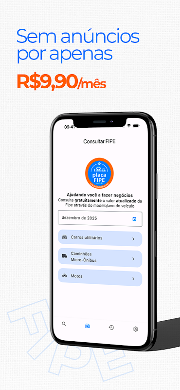 - Tabela FIPE Atualizada: Verifique os valores de mercado de qualquer veículo, pesquisando por placa ou diretamente por modelo e ano;