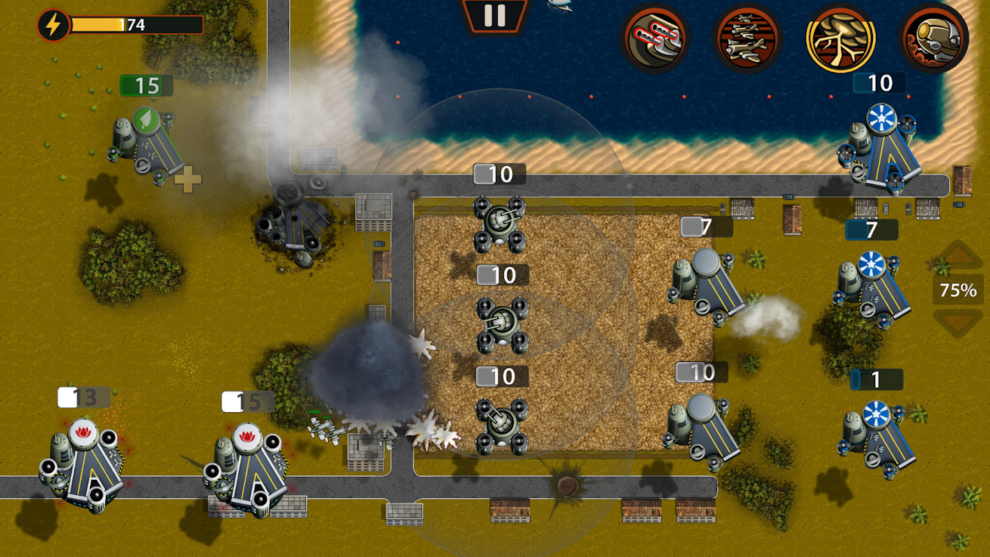 • Gerar, reforçar e danificar bases torna a jogabilidade variada e flexível