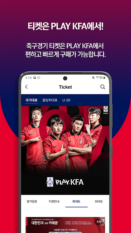 O aplicativo oficial PlayKFA é um aplicativo operado pela Associação de Futebol da Coreia que oferece um playground para os fãs de futebol coreanos por meio de notícias e eventos da seleção nacional de futebol.