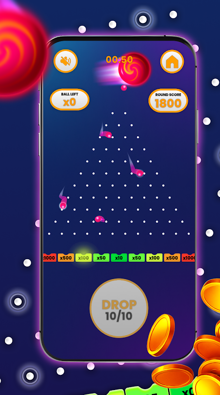 Drop balls, hit pins, and score big in Plinko Multi Drop!