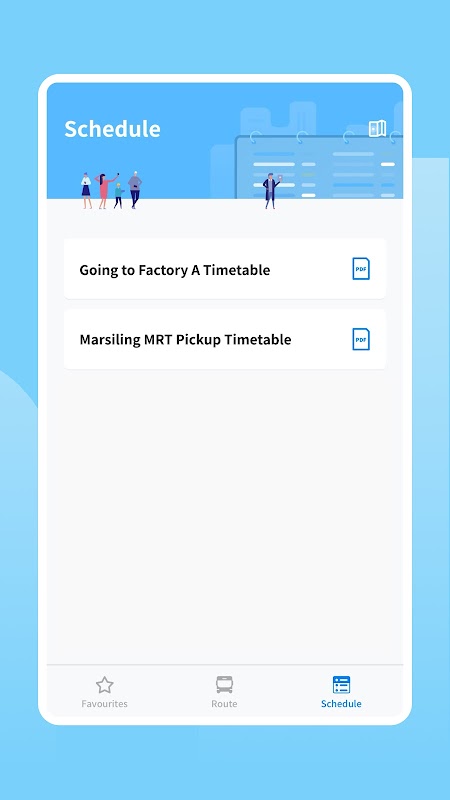 Os membros da equipe podem obter informações rápidas e fáceis sobre as rotas do serviço de ônibus, chegada designada e tempo estimado de espera. Os horários de chegada dos ônibus são estimados de acordo com o Google Maps.