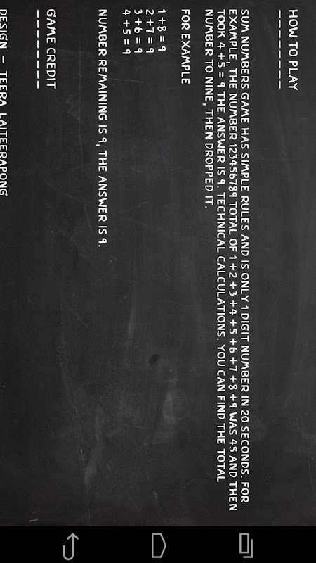 Sum numbers game, It has simple rules adding until reduced to 1 digit in 20 seconds. Don't forget to connect to the internet to keep your World record!.