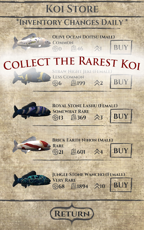 Crie sua própria experiência zen criando novas e raras koi e decorando seu lago para torná-lo bonito.