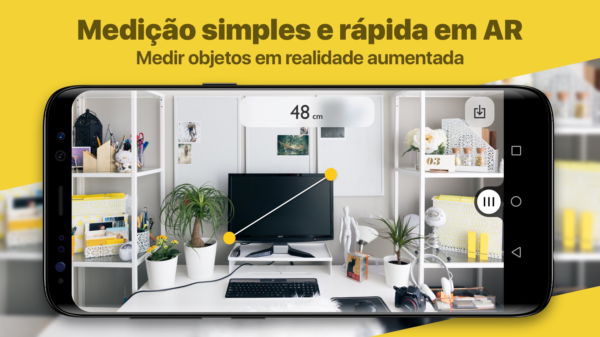 Aproveite 4 ferramentas inteligentes em um app de régua com incrível aplicativo de medição RA Régua De Bolso Na Realidade Aumentada.