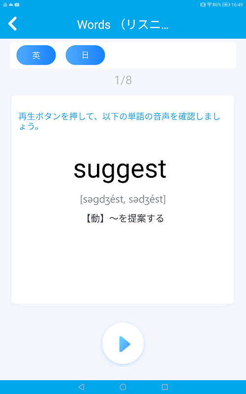 ・ Ao alternar o idioma exibido, você pode praticar a parafraseia para o inglês instantaneamente enquanto analisa a tradução para o japonês!