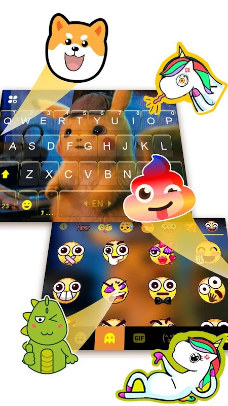* O nosso teclado permite personalizar o tema de teclado escolhendo as suas próprias fotos, papéis de parede HD, papéis de parede HD emojis, imagens de applock ou imagens de executador. Também pode alterar as cores do tema (incluindo o fundo e botões), personalizar os estilos, tamanhos e cores da letra! Seja você o designer, e segure o seu estilo.