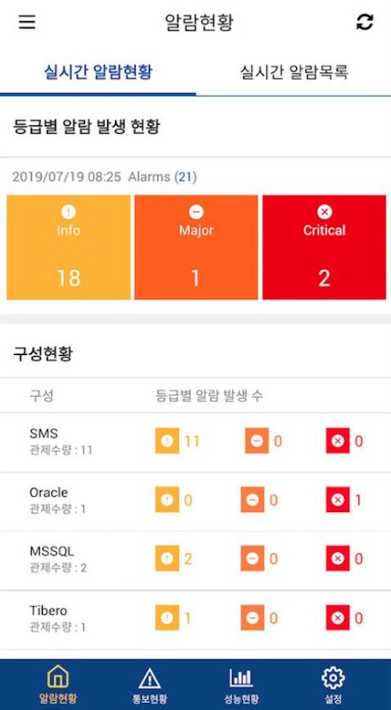 - Status do Alarme: status de ocorrência de alarme por grau e 3 subcategorias de acordo com o equipamento