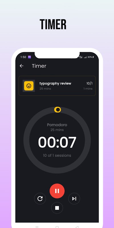 Liberte o seu potencial com o Pomodoro Timer – é a sua sinfonia de produtividade! 🎶 Experimente o crescendo da eficiência elevada, a harmonia do domínio do tempo e a melodia dos impulsos criativos. 🚀 Este não é apenas um cronômetro; é o seu eliminador do estresse, o virtuoso do trabalho e o compositor de equilíbrio. ⚖️ Cultive a autodisciplina sem esforço. 💪 Quer você seja estudante, freelancer ou profissional, Pomodoro é o seu encantador de eficiência