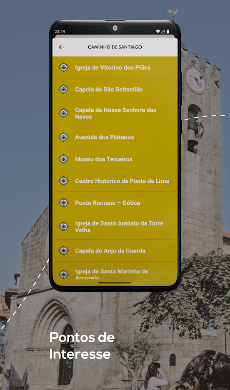 Tem a possibilidade de durante o percurso visualizar a sua localização e os diversos pontos de interesse a visitar.