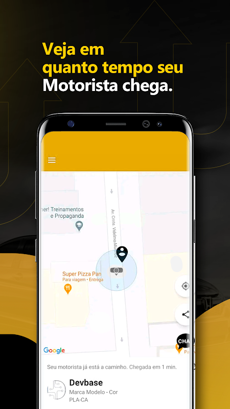 Nosso aplicativo permite que você chame um de nossos veículos e acompanhe o deslocamento do carro no mapa, sendo avisado quando ele estiver na sua porta.