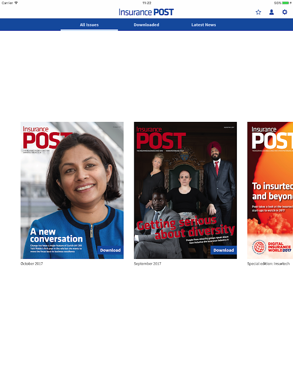O aplicativo Insurance Post fornece todo o conteúdo da edição impressa da revista, além de edições especiais exclusivas, disponíveis apenas no formato de aplicativo, além de notícias de última hora. Ele é atualizado ao longo do dia, mas também oferece aos usuários a capacidade de visualizar artigos offline, salvar e compartilhar histórias favoritas e personalizar o tipo de conteúdo recebido.