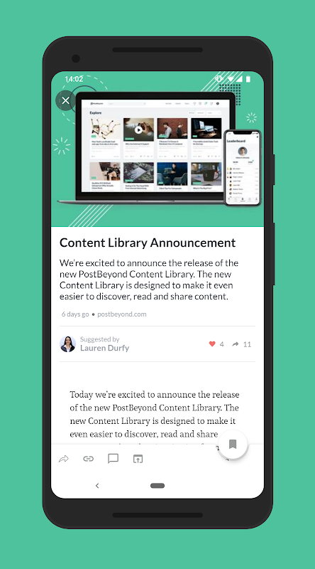 PostBeyond oferece uma plataforma de defesa social baseada em nuvem que capacita funcionários e parceiros a se tornarem poderosos defensores da marca. Projetado especificamente para atender às necessidades complexas do cenário atual de marketing em constante mudança, conformidade regulatória e funcionários conectados, o PostBeyond está ajudando as organizações a mudar a forma como se comunicam com seu mercado e clientes por meio da mídia social.