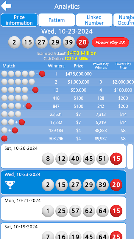Análise detalhada de resultados vencedores anteriores: verifique rapidamente os números vencedores e as informações sobre prêmios em dinheiro para todas as rodadas e inicie sua própria análise por meio de estatísticas regionais de ganhos.