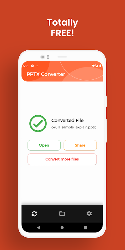 📂 All the converted files are saved in the root folder of your phone, in the folder "PPTX Converter"